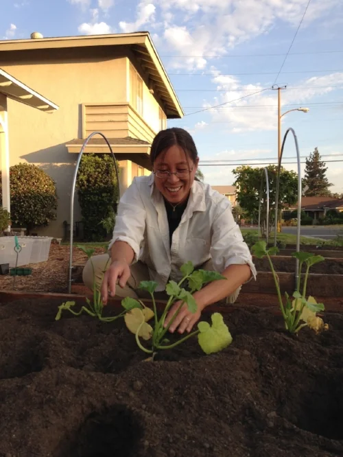 After sheet mulching our front lawn and battling zombie grass, we were ready to do something useful with our huge plot of mulch: grow food.
